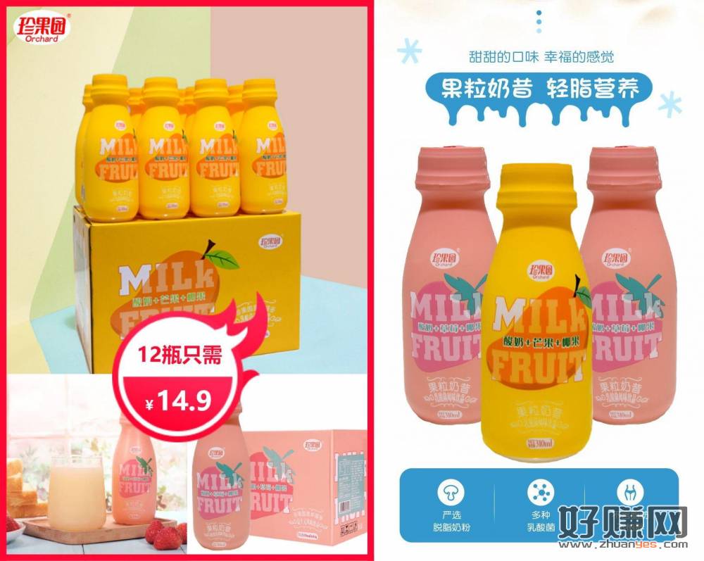 超级好喝的果粒奶昔牛奶来啦!14.9元12瓶珍果园益生