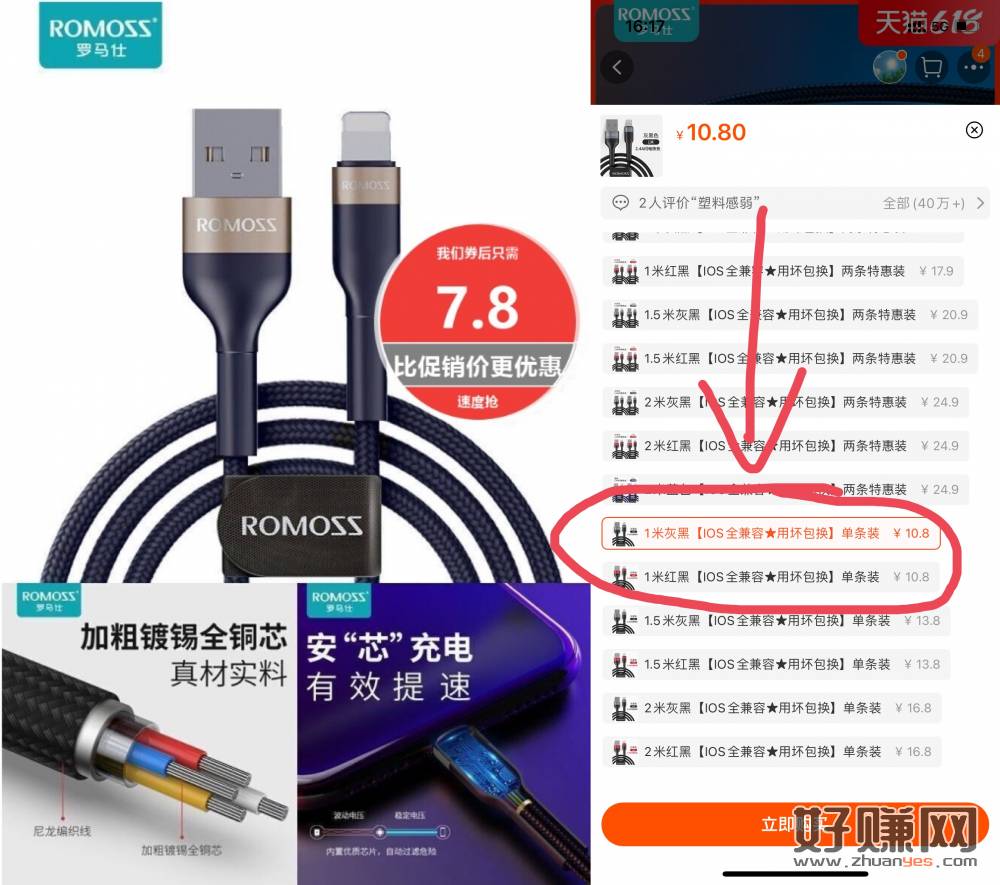 7元入手大牌[ 罗马仕 ]苹果快充数据线1米拍如图所
