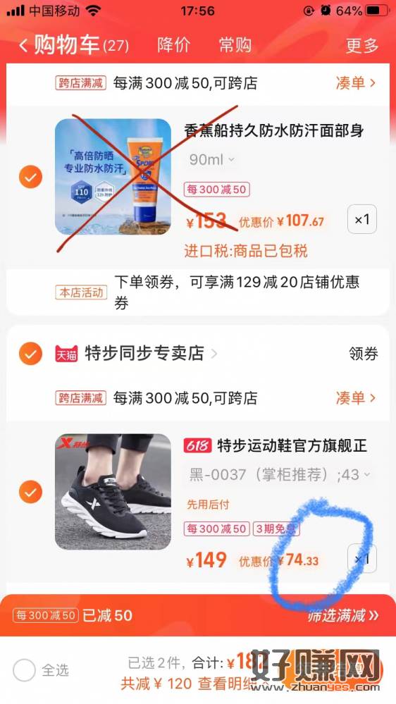 凑单BUG!74元撸特步运动鞋----第1步:特步加购物