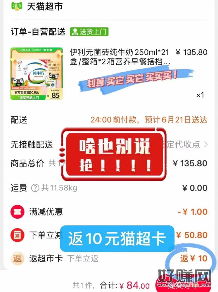 喵超|伊利无菌砖奶84元2箱42盒反10卡快冲史D