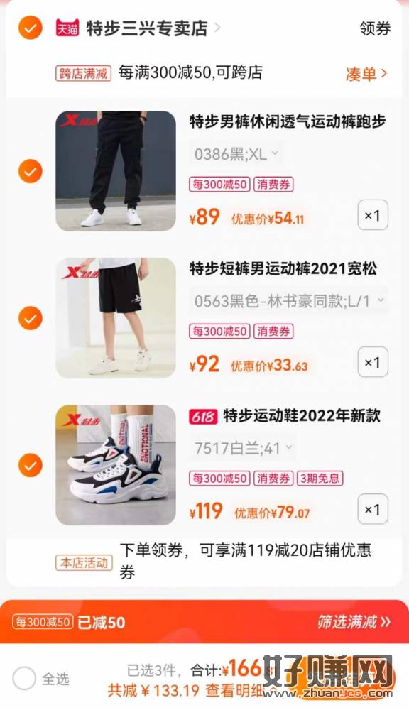166亓抢1双运动鞋+一件T恤+一条裤子!神价!