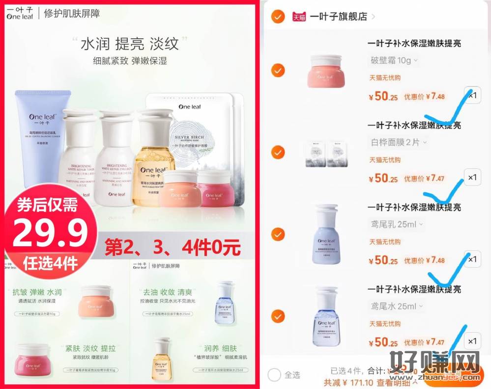 一叶子补水保湿淡纹润肤套装!29元任选4件
