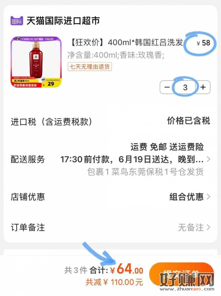 韩国红吕洗发水64共3瓶折21/瓶分分钟拥有高颅顶~