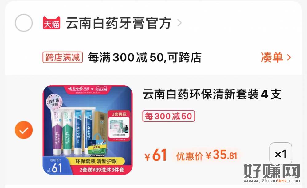 云南白药牙膏,凑单攻略!官旗店活动,我们4支351.