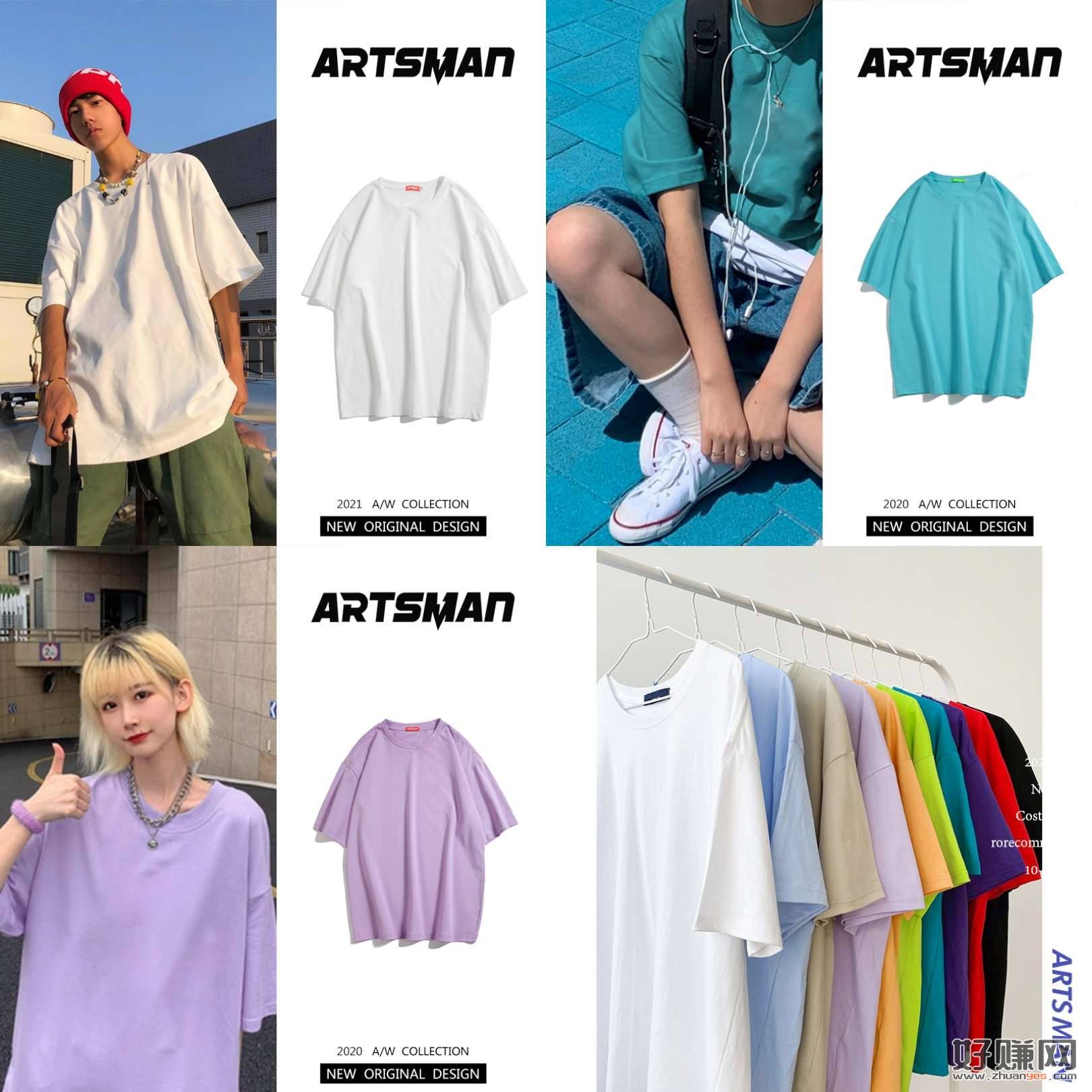 13.9亓[ 港仔文艺男 ]纯色纯棉短袖T恤男女轻薄款