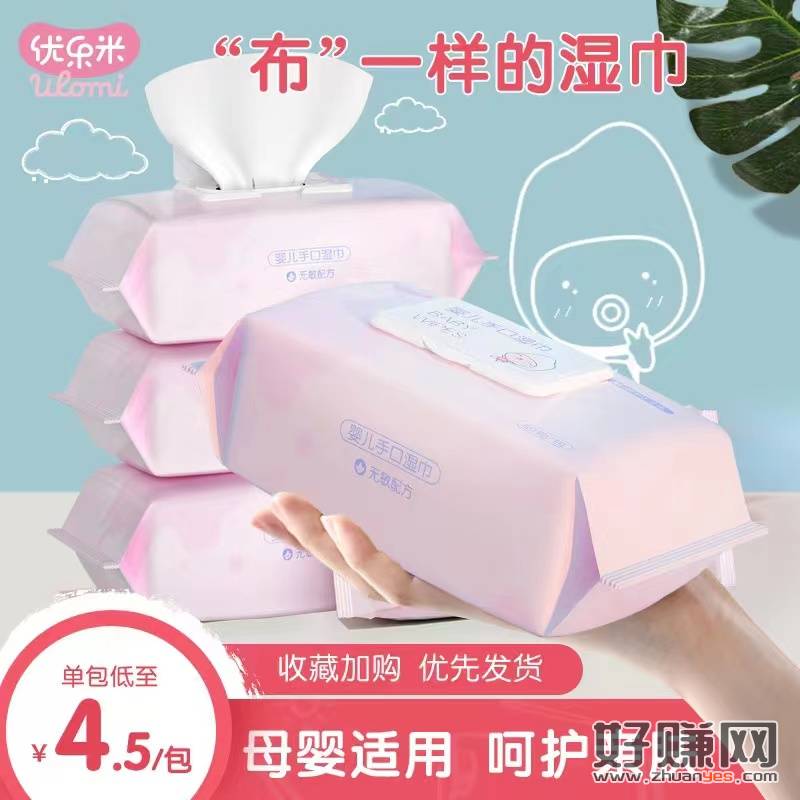 优乐米儿童手口湿巾8.8️80抽*3包锁水保湿,柔韧不