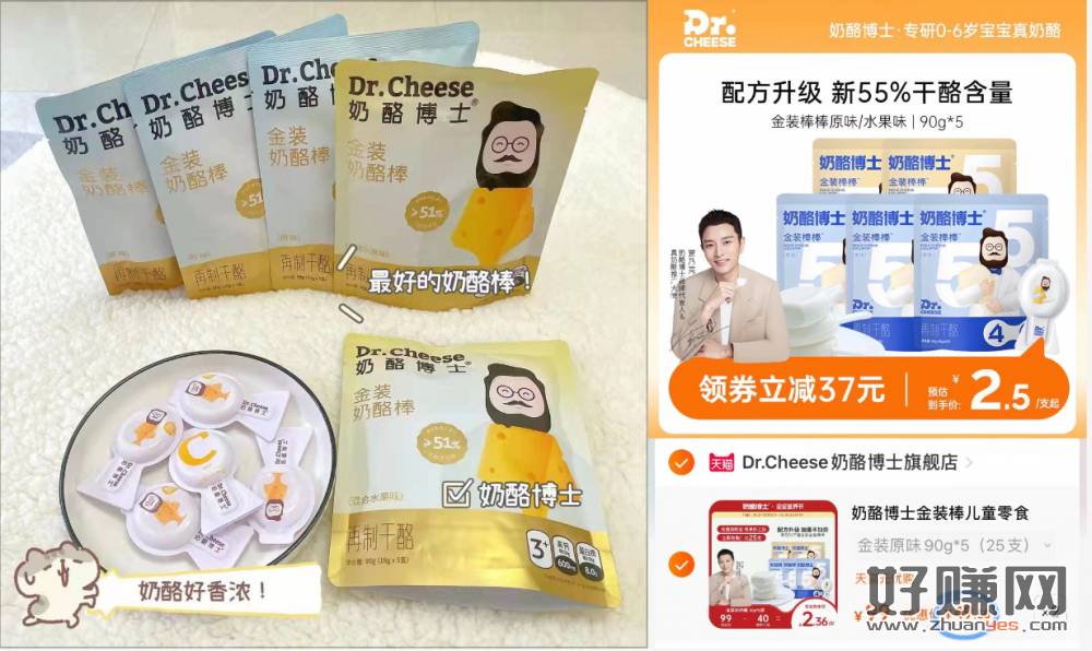 奶酪博士金装奶酪棒拍2件,折49.5/件折1.98/支,多