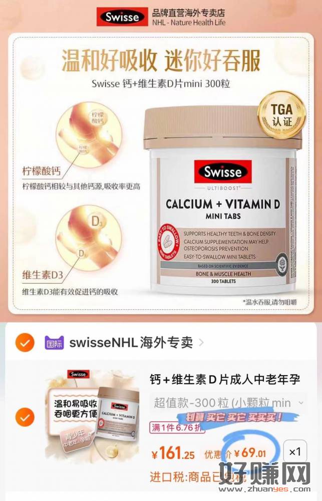 澳洲Swisse钙片+维生素D69得300粒钙+D同补,