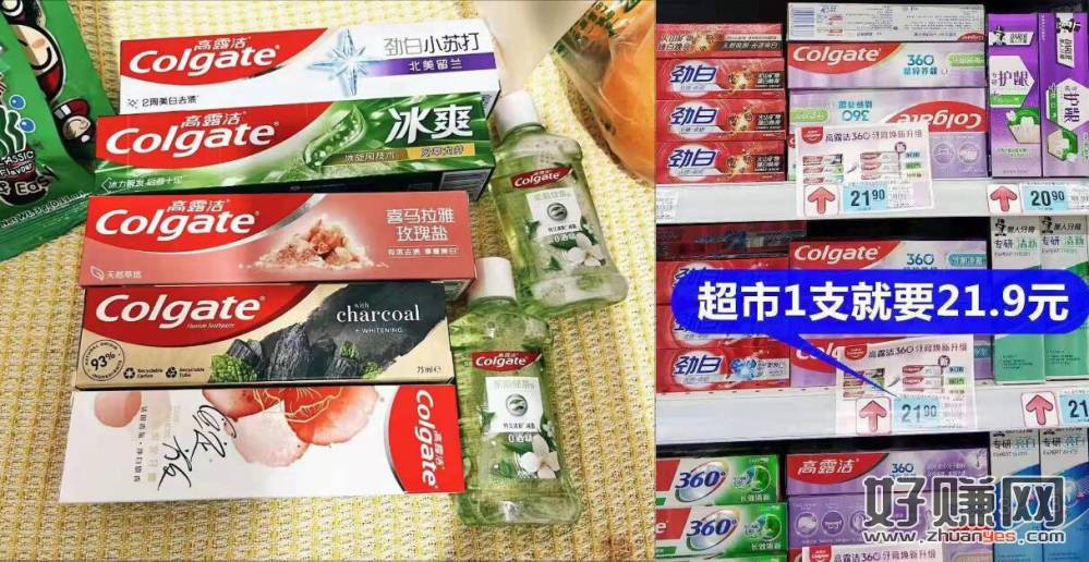 高露洁牙膏7件套39.9到手牙膏5支+2瓶漱口水线下超