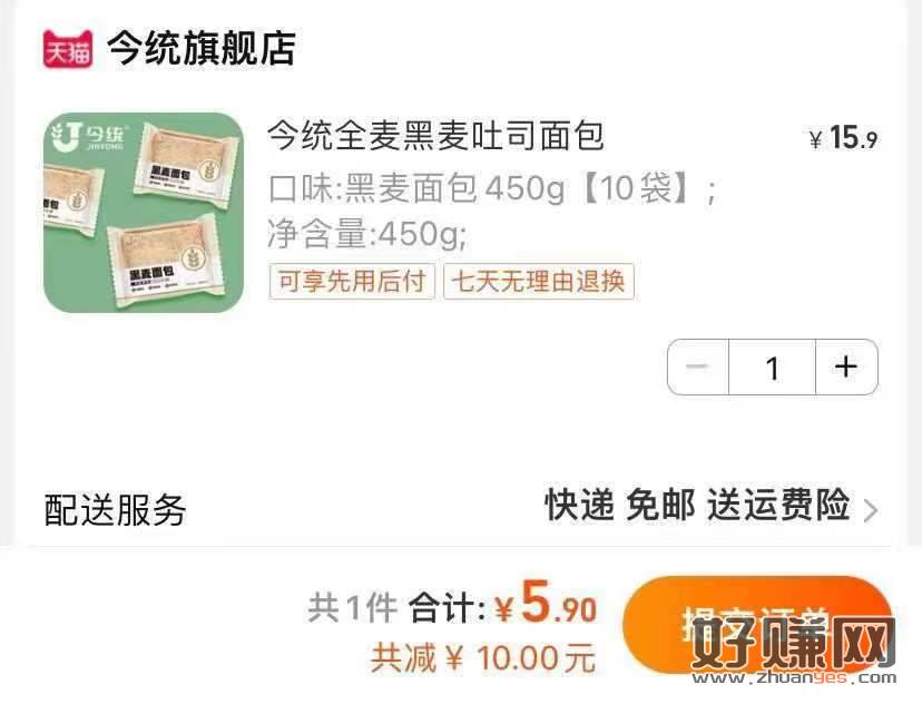 5.9秒!快快快今统全麦黑麦吐司面包450g