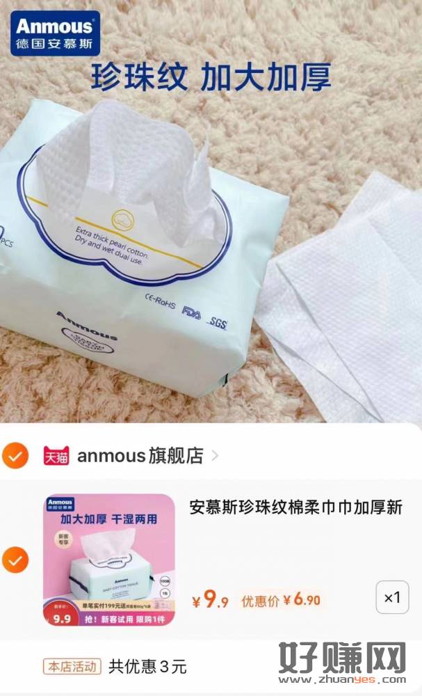 安慕斯棉柔巾100抽6.9包.邮~小白菜干湿两用,平纹