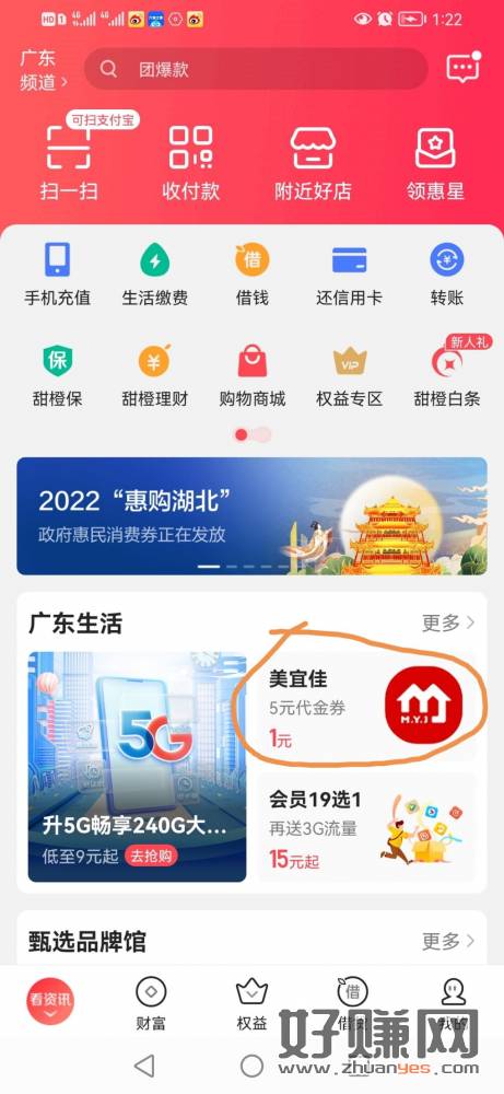 翼支付是广州电信手机号注册的,可1元买5元代金券(满10用),每个月可买两次,在广东地区美宜佳被扫抵扣。