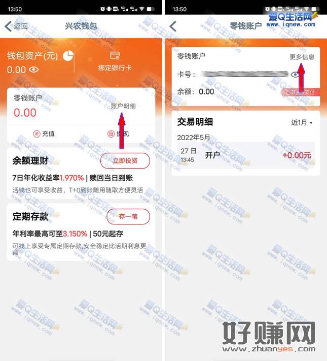 注销方法:工银兴农通APP-首页【兴农e钱包】-点击【账户明细】-点击【更多信息】