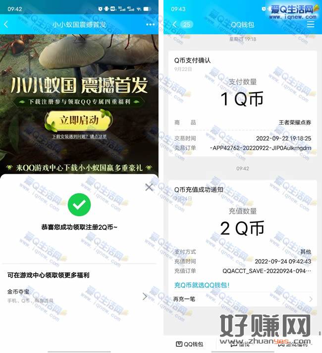 亲测2Q币秒到 QQ下载小小蚁国手游领取 先到先得 下载返回领取即可
