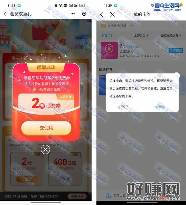 移动用户 微信打开下方小程序 领完1重礼 点击去领2重礼即可-移动APP-我的卡券-点击使用兑换