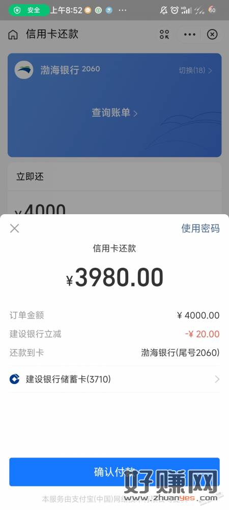 广东建行储蓄卡支付宝还款4K-20,2次