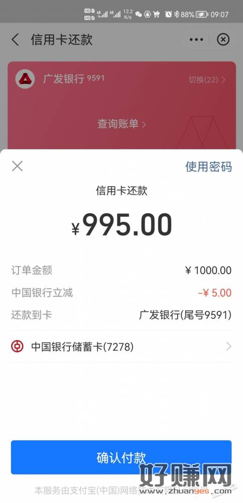 支付宝还款中行储蓄卡1000-5