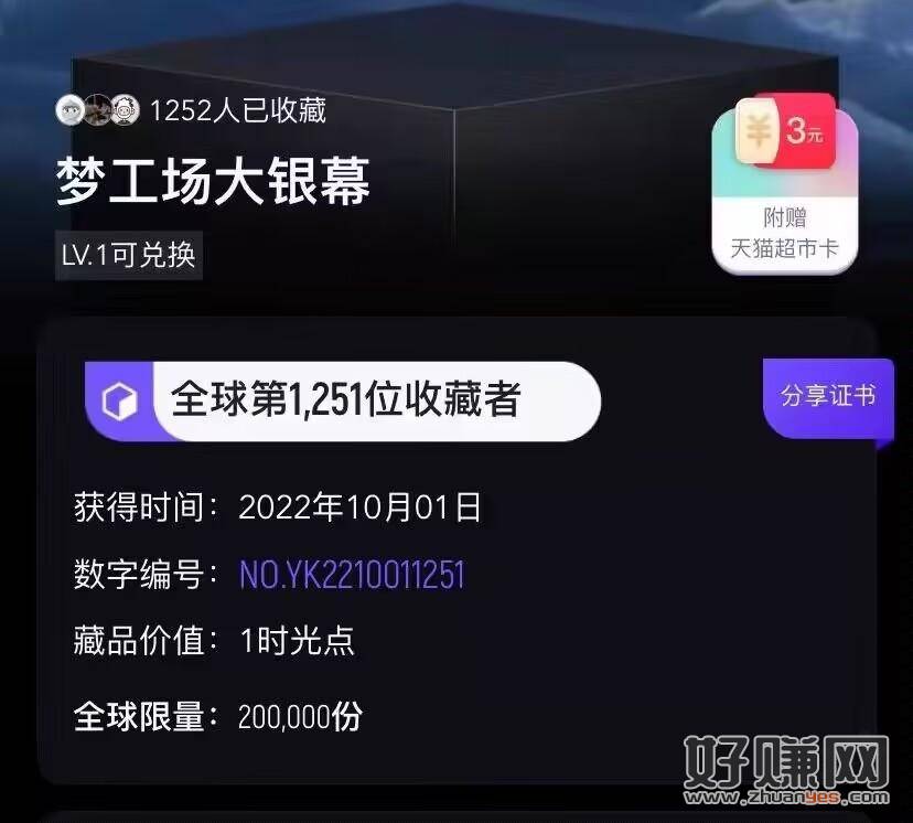 兑换梦工厂大银幕--得3猫卡 去卡券包领取