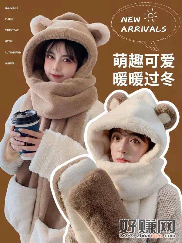 姐妹们~小熊围巾手套一体围脖来啦拍下12.2仿羊羔绒