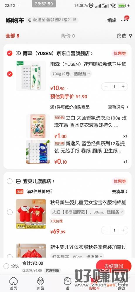 10023048622 10023048622加入购物车取消plus价格,换购有个一块钱洗衣液,一个一分钱卷纸,还包邮