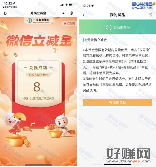 农行凭星级每月领2-20元微信立减金 不限制掌银地区
