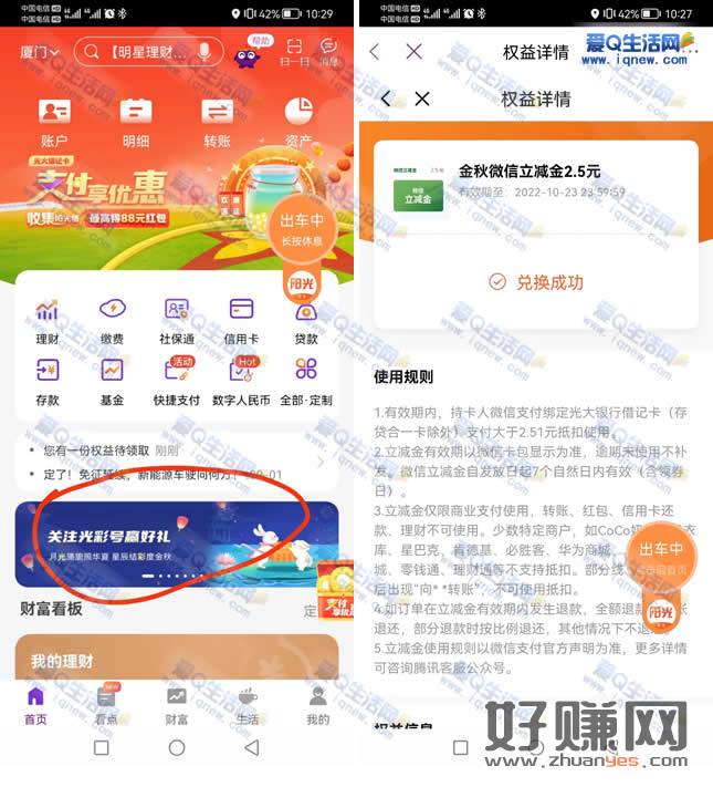 亲测2.5元立减金秒到 光大银行关注光彩号领取
