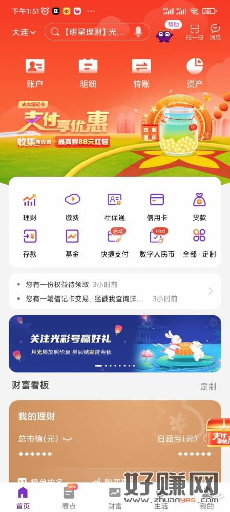 光大首页滚动,关注几个基金,有2.5立减金。