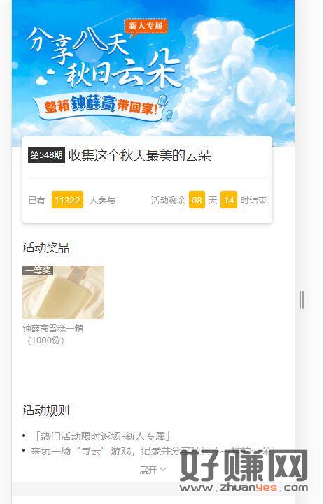 墨迹天气新活动 连续打卡分享天空图片8天 一箱钟薛高 注册时间9月9日-10月11日用户才可以参加