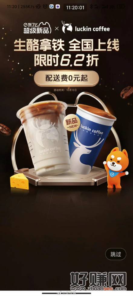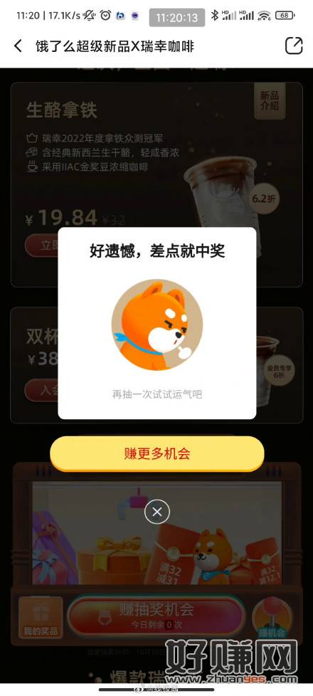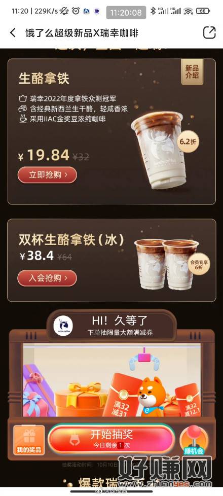 饿了么下拉抽一分钱瑞幸新品,运气好就和我图三一样