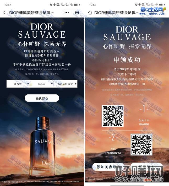 需要关注迪奥的公众号去参与领取,领取后要到指定柜台兑换