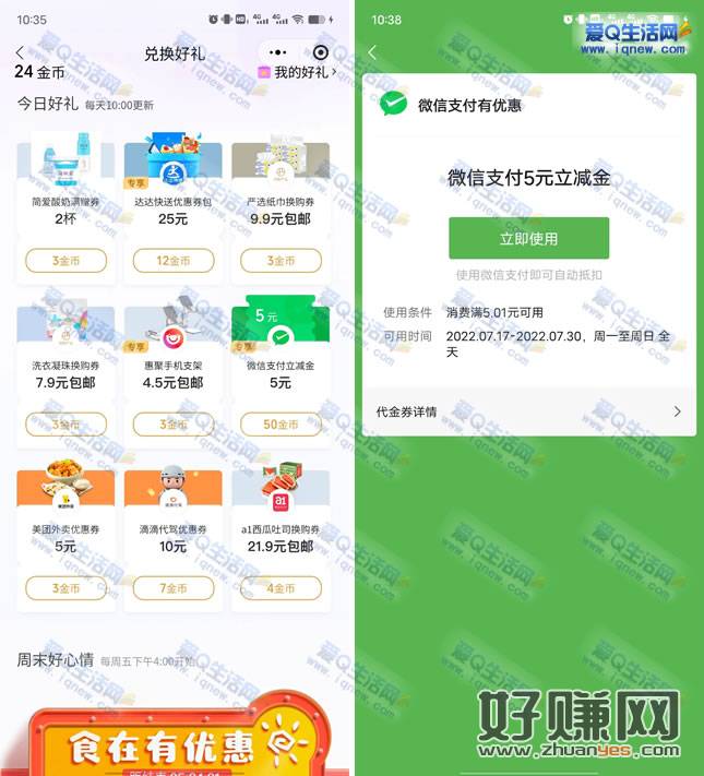 微信搜索【支付有优惠】小程序-点击兑换好礼-看有无兑换5元立减金