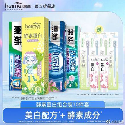 黑妹套装,27.9黑妹官方酵素嚣白美白牙膏家庭组合装龙