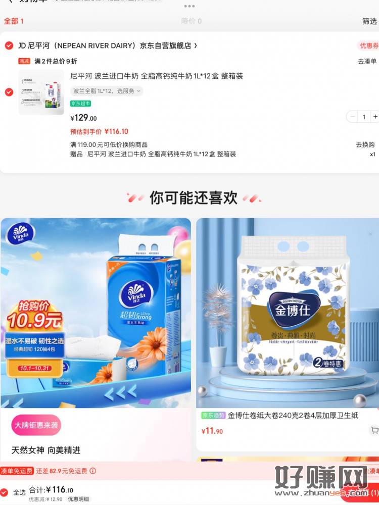 江苏神价牛奶,116元两箱