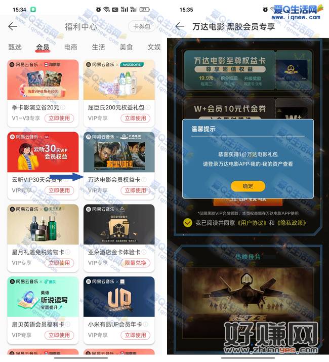 网易云VIP免费领万达电影会员权益卡 亲测兑换秒到