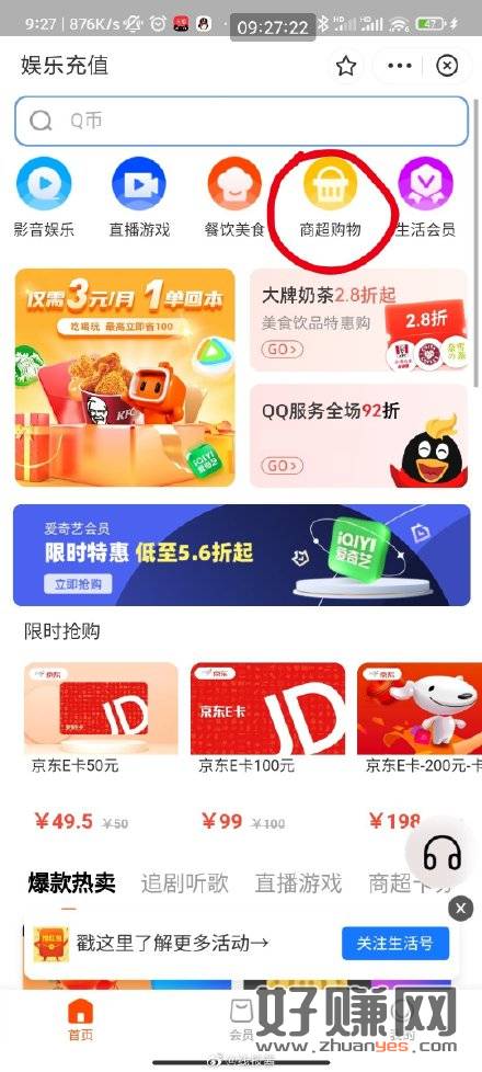 2026超市卡路径:京东首页——京东超市——右侧圆形悬浮窗