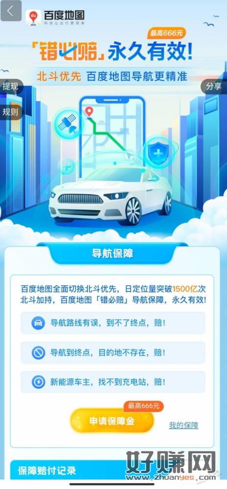 导航有误,赔,我当时导的停车场,导到的是出口,申请赔了66