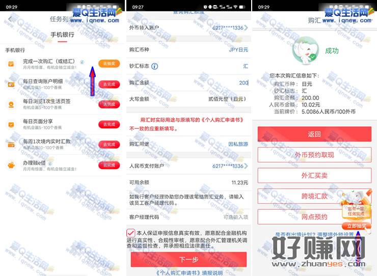 工行APP完成一次购买结售汇任务,就可以抽奖