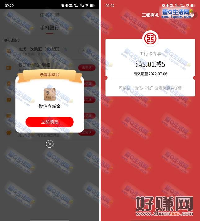 亲测工行5元微信立减金秒到 完成结售汇任务抽奖