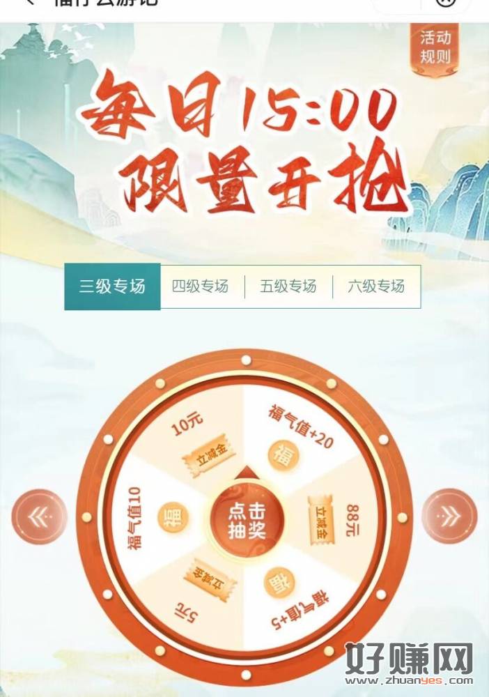 中国银行福仔云游记每天15点抽5-288元微信立减金 每天可去