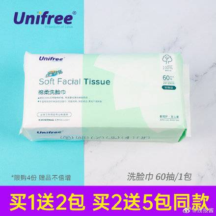 19.9亓,拍1发3包, Unifree纯棉洗脸巾60抽*3包,
