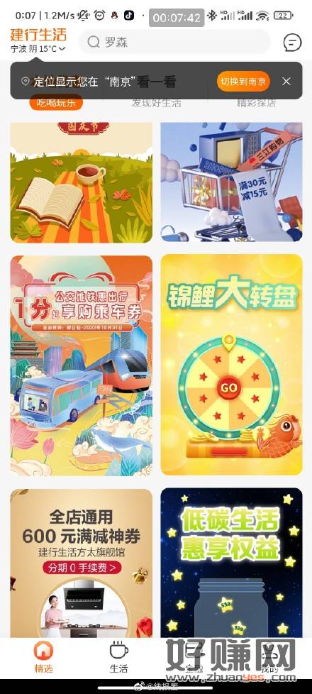 建行生活改宁波,下拉锦鲤大转盘,不出意外是谢谢参与