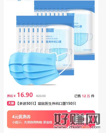 买100只送50只,16.9亓[ 袋鼠医生 ]医用外科口罩