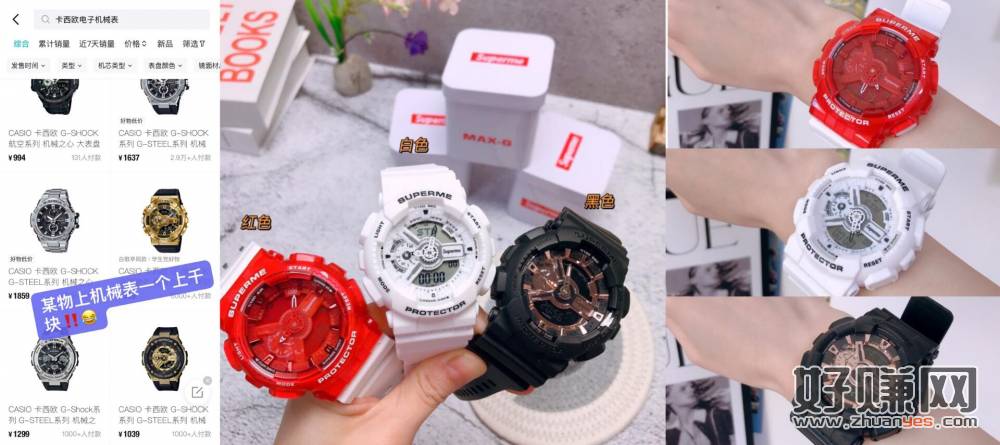Superme!正品!正品!!官网同款上千块。。十几种款式可选!制作工艺精细!200米深度防水,倒计时,闹钟,全自动日历,抬手灯,防震表盘,Lcd液晶显示盘!这些功能都有!戴起来贼啦潮酷!!