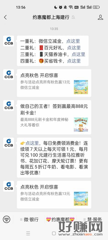 微信关注约会魔都是海建行公众号 拉小领取2建行立减金