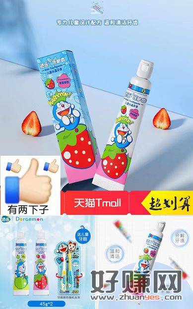 1哆啦A梦儿童牙膏2支+牙刷2支9.9亓