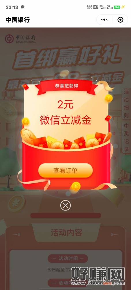 公众号中国银行微银行,首次,首次绑卡抽立减金,必,二类也可