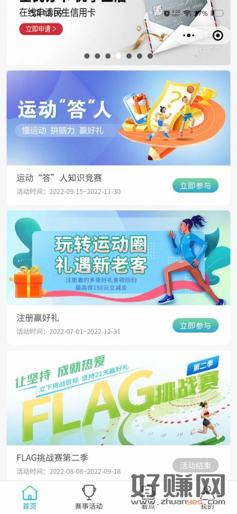 【参与方式】微信搜索小程序【民生银行运动圈】下拉,玩转运动圈注册进去