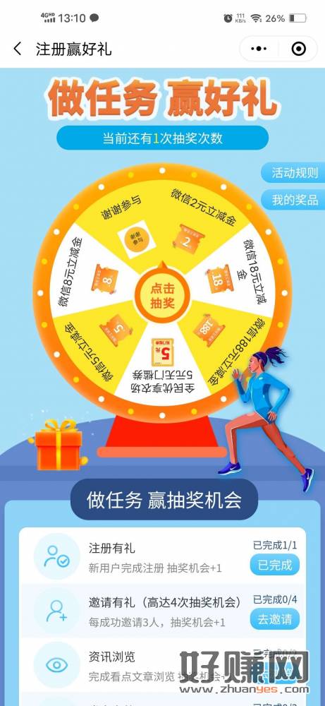 【活动规则】新一期!完成2个浏览任务抽2次->抽中立减金在“我的-我的奖品”中领取,非必中