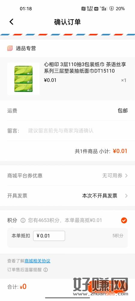 平安口袋银行APP,积分兑换区,选十元以下,拉到最下面,有一个0.01纸巾(没卡无视)