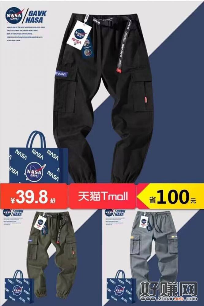 降温了,上裤子!39.8=NASA男士休闲裤束脚工装裤39.